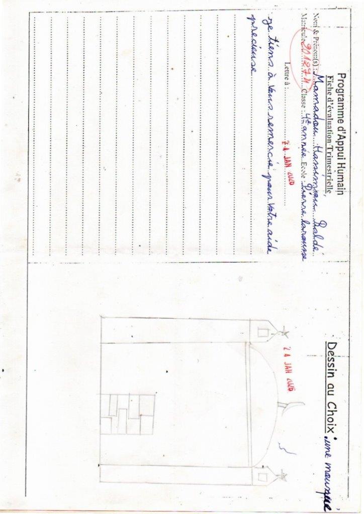 Popis situace: Oba rodiče jsou aktuálně bez zaměstnání, a finanční situace je tedy velice nepříznivá. Mamadou a jeho sestra často musí pobývat u tety, nebo nemají nic k jídlu. Společně se sestrou jsou často propouštěni ze školy kvůli nezaplacenému školnému. Společně se svou sestrou Boubacar Souadu (dítě č.201273) tedy žádají o pomoc aby mohli ve svém studiu pokračovat.