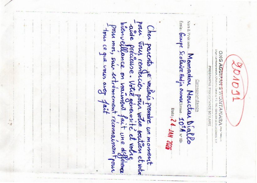 Popis situace: Celou rodinu zasáhly nedávné politické události, které způsobily, že otec přišel o práci a žije jen z denní almužny, modliteb a obětování. Jelikož jeho pole působnosti, jakožto Imám, je v oblasti práce nyní dosti zúžené. Mamadou má ještě čtyři další sourozence Ibrahima (2011), Ousmane (1991), Caouratou (1996) a Adamu (1999).