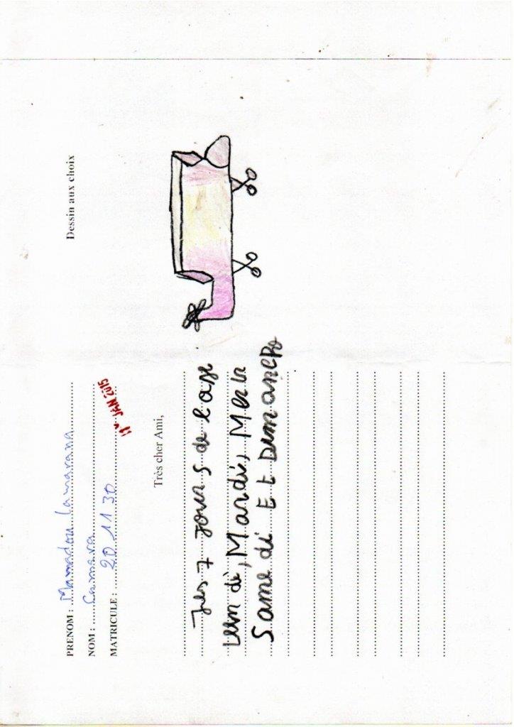 Popis situace: Rodiče chlapce pracují jako většina místních na poli a potýkají se s nedostatkem prostředků na zajištění základních potřeb. Jí obvykle dvakrát denně a to v závislosti na aktuální sklizni. Mamadou má staršího bratra.