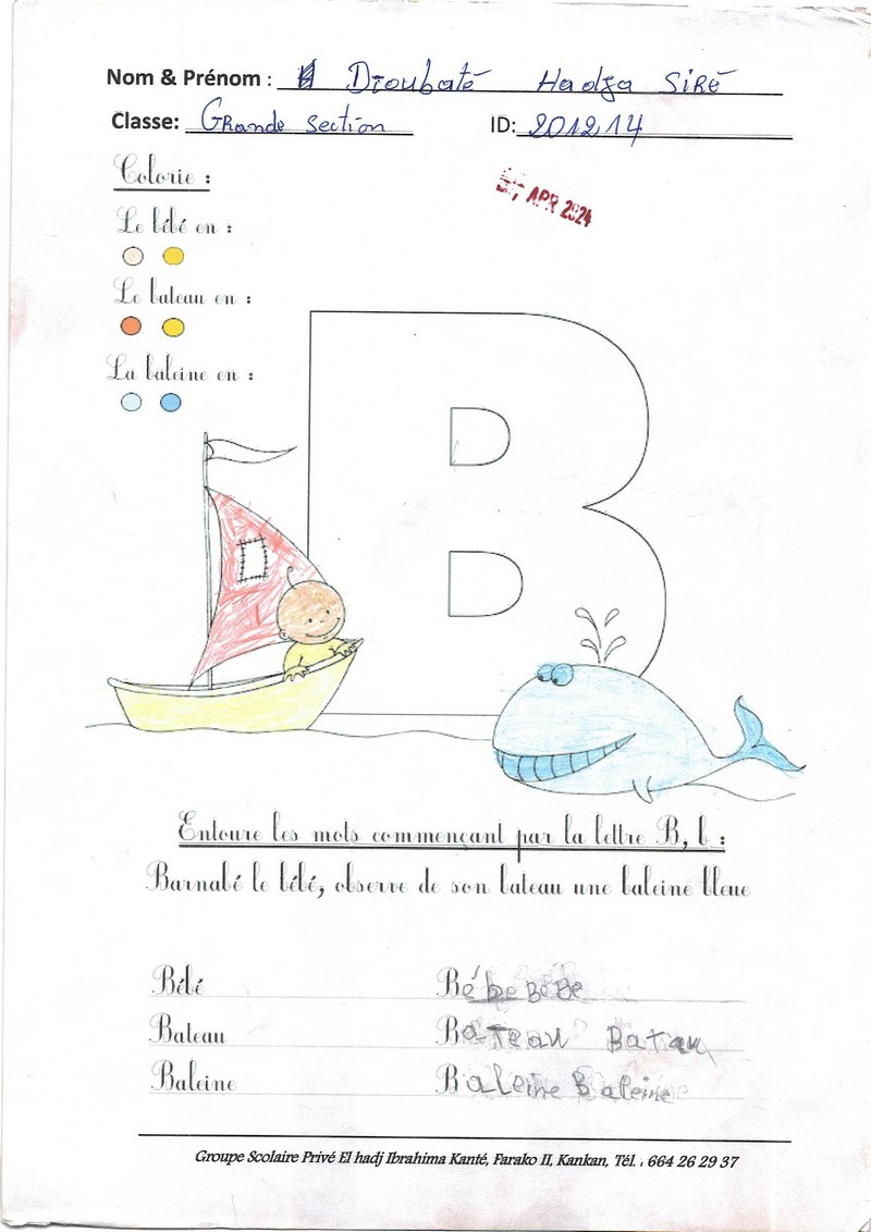 a dnes navštěvuje školu El Hadj Ibrahima Kanté.
