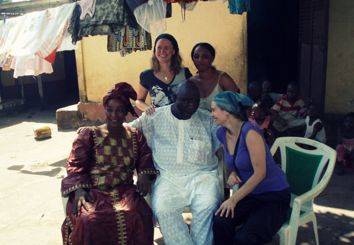 Some families in Guinea keep the tradition of polygamy and Aboubacar's family is one of them. We could meet Aboubacar's kids from his four marriage and also his first and fourth wife. Volunteers Eva and Lenka replaced in the photo other two wives.