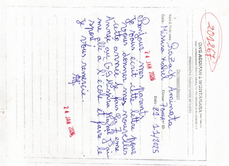 Popis situace: Aminata pochází ze čtyřčlenné rodiny. Její maminka je hospodyně, ale poslední čtyři roky také vážně nemocná. Její otec nemá zaměstnání, a tak Aminata potřebuje podporu po finanční stránce aby vůbec mohla chodit do školy.